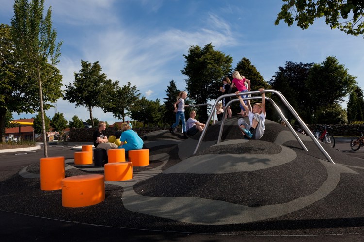 - Det meget trafikerede kryds, som deler byen op i 4 dele og som vanskeliggør etablering af sociale rum i byen, både fysisk og mentalt