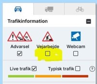 Tryk på linket og se hvor der er vejarbejde på større veje og hvor vejen spærres.