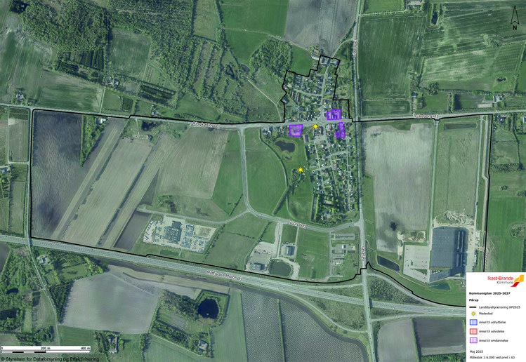Kortet nedenfor viser udviklingsmulighederne i Pårup i overensstemmelse med de strategiske mål om at omdanne eksisterende bygningsmasse.