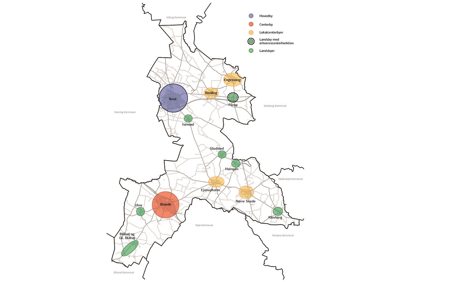 - Ikast er udpeget som hovedby.