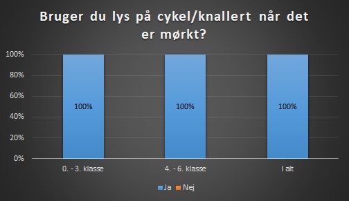 Alle eleverne på Isenvad Skole har svaret, at de bruger lys på cyklen, når det er mørkt.