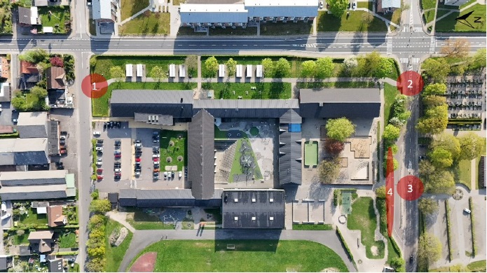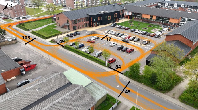 For at få et billede af de trafikale forhold omkring Ikast Østre Skole, er der i foråret 2025 foretaget droneoptagelser af ankomstarealerne ved skolen. Droneoptagelserne er foretaget onsdag den 30.04.2025 kl. 7.30 - 8.00 af Artelia. Der er både lavet optagelser omkring parkeringspladsen ved Finlandsgade og ved ankomstarealerne på Gl. Skolevej.